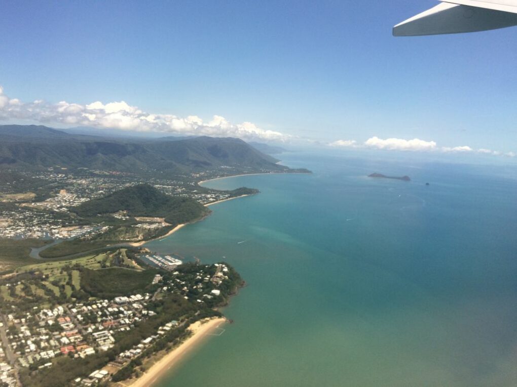 Der “Heim”flug nach Sydney bietet einem übrigens von Cairns aus sehr schöne Aussichten auf das Great Barrier Reef. Aus der Luft sieht man erstmal, wie groß das Riff tatsächlich ist. Auch wenn man dabei nur einen kleinen Teil des Riffs sieht, das sich selbst aus dem Weltall erkennen lässt.
