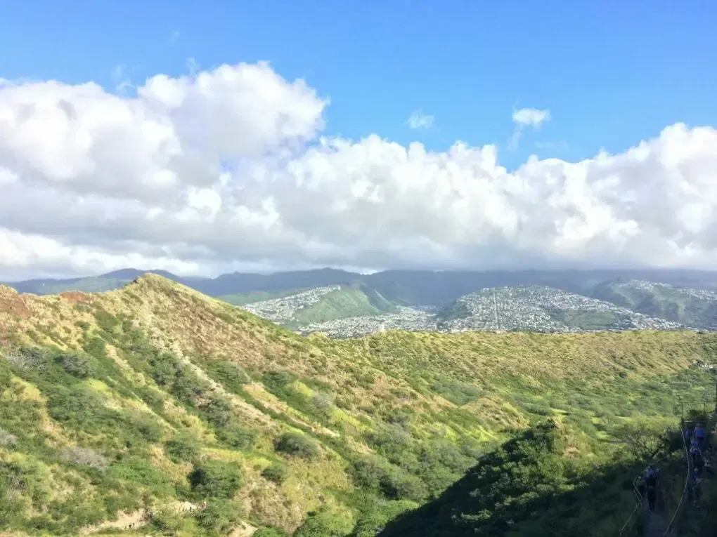 Vom Inneren des Kraters führt ein 1,1 km langer Weg nach oben, der besonders vormittags sehr voll ist. Eine bessere Zeit ist der Nachmittag, wobei man vor 16.30 Uhr den Weg antreten muss, da der Park (Diamond Head Crater Park) um 18.00 Uhr schließt und man nur bis 16.30 Uhr hochgelassen wird.
