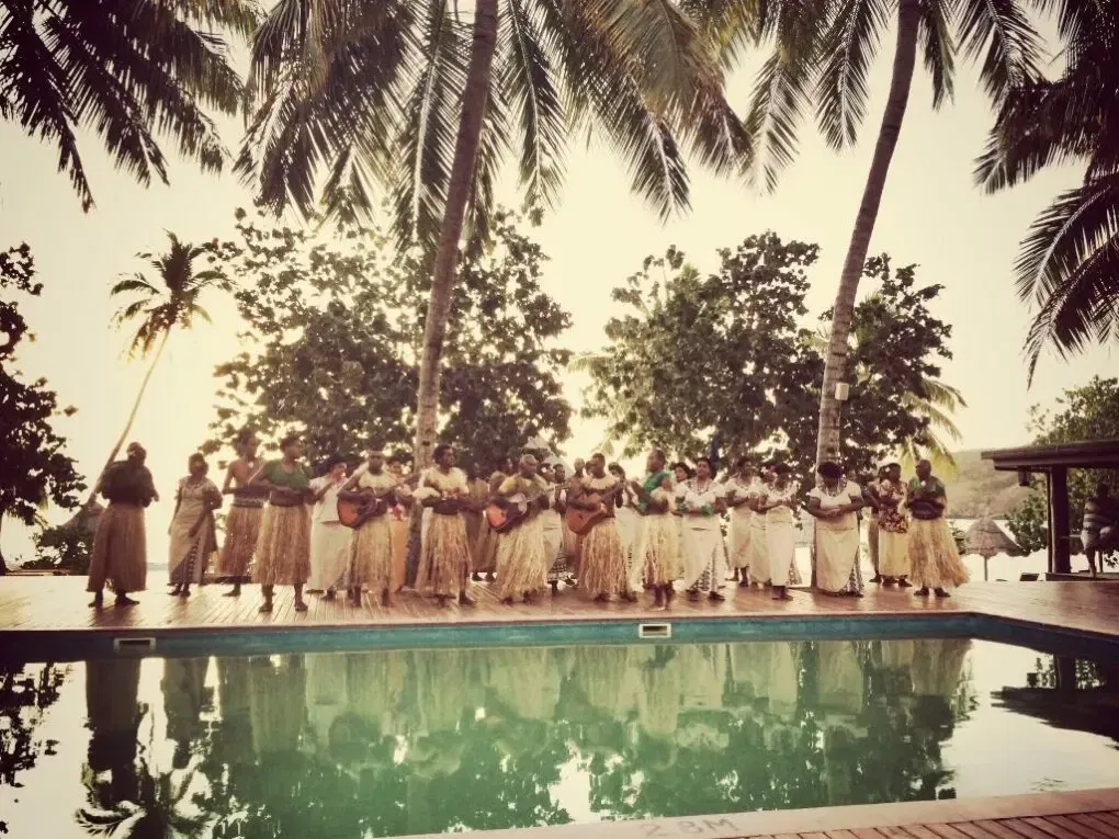 In anderen Berichten schrieb ich ja schon von der unglaublichen Freundlichkeit der Einheimischen. Auch hier, bzw. besonders hier war das nicht anders. Nicht nur Neuankömmlinge werden jeden Tag (bis auf Sonntag) von den Angestellten am Abend vor dem Essen zu einer Cava-Zeremonie eingeladen. Auf einer Bastmatte sitzend erhält man während eines gewissen Ablaufs eine Schale mit Cava, dem Nationalgetränk Fiji’s überreicht. Ab dem 2. Tag wurde ich immer wieder zu späterer Stunde, wenn nur noch die Einheimischen dort zusammensaßen, eingeladen mich dazuzusetzen und saß oft als einziger Gast bis nach 0 Uhr dabei, hörte der Musik, die die anderen auf Gitarren und einer Ukulele spielten und dazu sangen zu, beantwortete viele Fragen zu meiner Reise oder hörte selbst gespannt zu, was die Jungs zu erzählen hatten, die mir einen Einblick in das Inselleben und dem Leben in Fiji allgemein gaben.