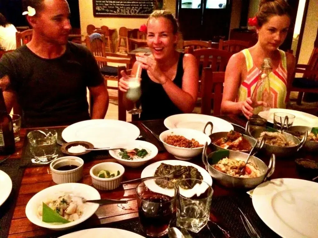 An den 6er, bzw. 8er Tischen, die abends gedeckt werden (übrigens auf einem Boden aus Sand), lernt man in entspannter Atmosphäre jeden Tag schnell neue Leute kennen, sodass man nach einigen Tagen fast alle Resort-Gäste kennt oder zumindest weiß, wer woher kommt.