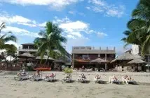 Nach links (auf’s Meer blickend) zieht sich der Strand ca. 400m und nach rechts sogar noch etwas länger. Holzliegen mit bequemen Auflagen oder Hängematten zwischen den Palmen, stehen für jeden Gast zur Verfügung. Wenn man keine Lust auf Strand hat, kann man es sich auch am nahegelegenen Pool gemütlich machen oder sich in die Coconut-Bar setzen, die etwas erhoben am Strand liegt.