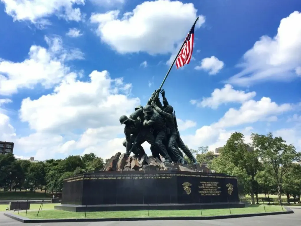 Das United States Marine Corps War Memorial, besser bekannt als Iwo Jima Memorial grenzt direkt an den Arlington National Cemetery und ist allen Angehörigen des United States Marine Corps gewidmet, die seit 1775 fielen.