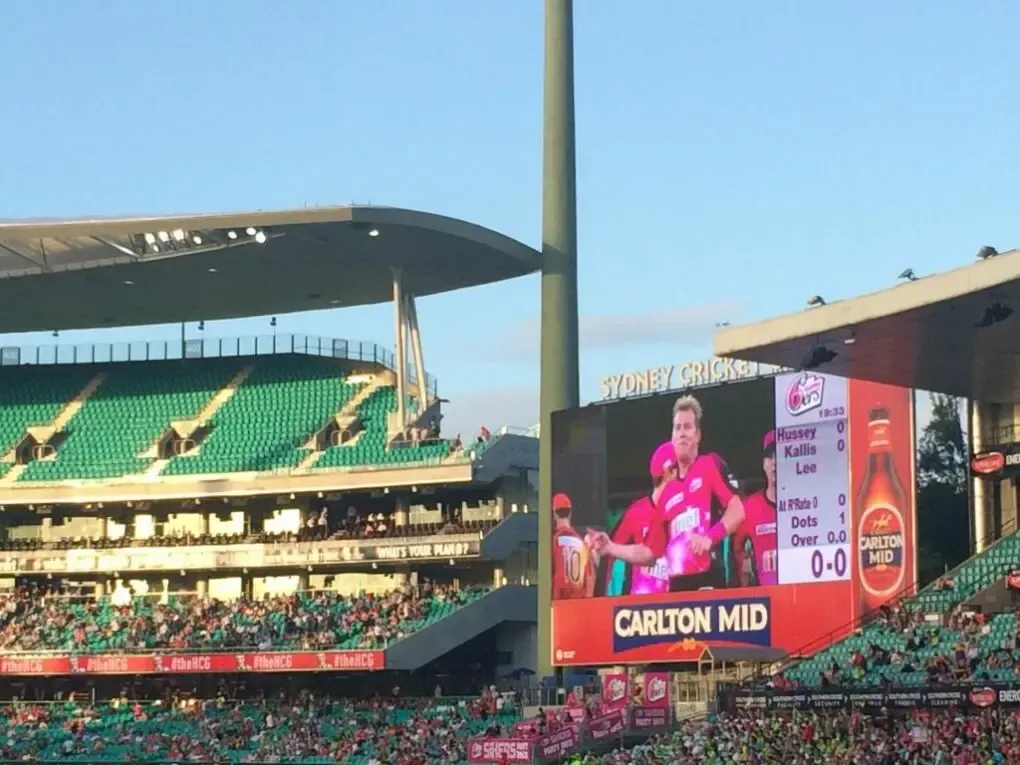 Auf meine vorerst letzten Tage in Sydney ergab es sich zufällig, dass das Cricket-Match Sydney 6ers vs. Sydney Thunder im Sydney Cricket Ground (SCG) anstand. Sydney Smash. Das Derby in Sydney sorgte an diesem Tag für einen neuen Zuschauerrekord was die Besucherzahlen bei einem Spiel dieser Art in New South Wales anbelangte. Mit 36.487 Menschen war das Stadion zwar nicht ausverkauft, aber in der Tat recht voll.