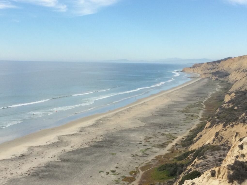 Black’s Beach ist über verschiedene Wege von der 91 Meter hohen Steilküste zu erreichen. Wir haben zwar nicht den falschen Weg gewählt um runter und wieder hoch zu kommen, aber sicherlich einen der steilsten Wege. Der Strand selbst, der zu den größten Stränden der USA zählt, war weitestgehend menschenleer. Nur ab und zu kamen mal paar unbekleidete Leute vorbei, was dadurch zu erklären ist, das Black’s Beach einer der wenigen FKK-Strände der USA ist.