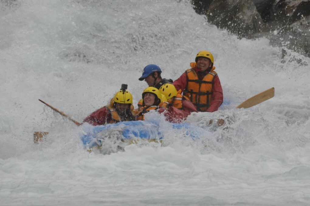 Nach dem Skydive stand als nächstes Whitewater Rafting mit Wildwasserschwierigkeit 3 bis 5 auf dem Shotover River an.